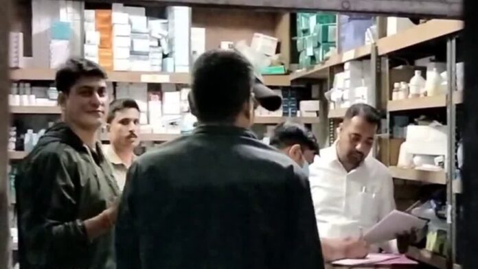 AIIMS के निकट लाइसेंस निरस्त होने के बाद भी दवाई बेचता हुआ मेडिकल स्टोर संचालक पकड़ा गया है. शटर बंद करके बाहर कर्मचारी दवाइयों के पर्चे लेकर चोरी छिपे से दवाई देते हुए सरकारी कैमरे में कैद हुआ है. एसडीएम और तहसीलदार की छापेमारी में यह बड़ा खुलासा हुआ है.